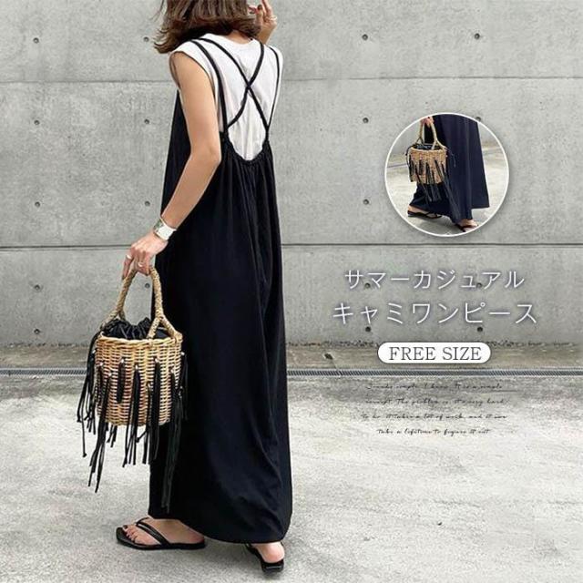 サロペット ワンピース キャミワンピース ロング丈 レディース 春 夏 ジャンパースカート キャミワンピ ロングワンピース 体型カバー おしゃれ ゆったり