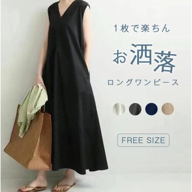 ワンピース マキシワンピース レディース 夏 ノースリーブ ワンピース マキシ丈 Aライン Vネック ワンピース ノースリーブ