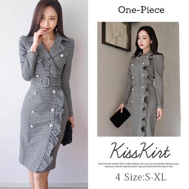 ワンピース レディース きれいめ フォーマル 結婚式 ドレス スーツ タイトワンピ 千鳥格 長袖 キャバ フォーマル 通勤 OL 30代 40代 着痩せ おしゃれ 卒業式