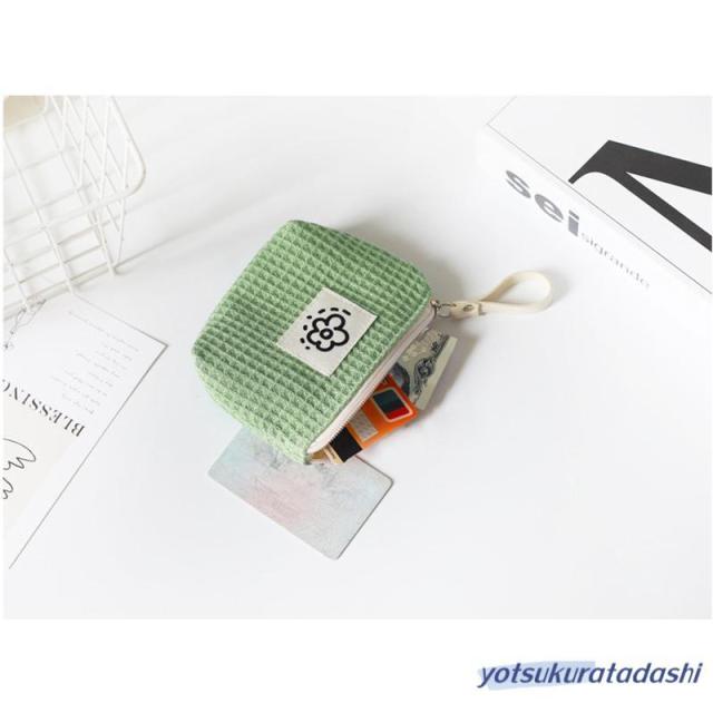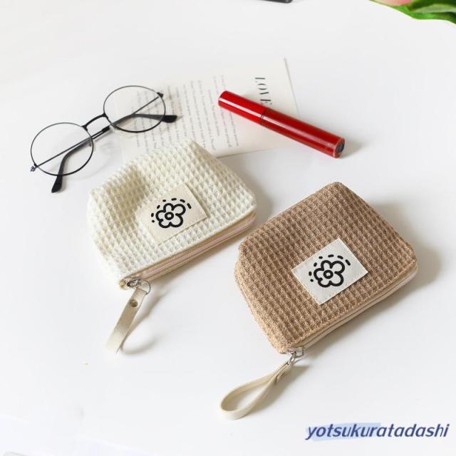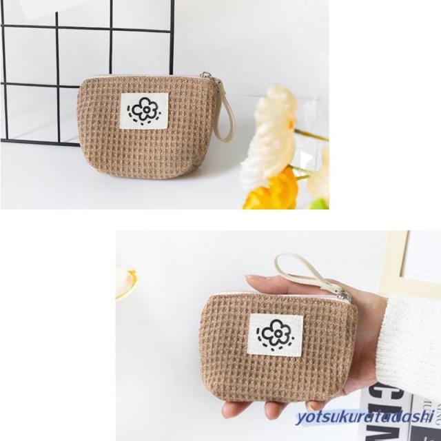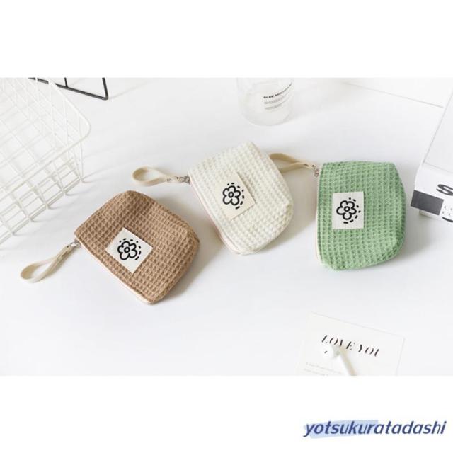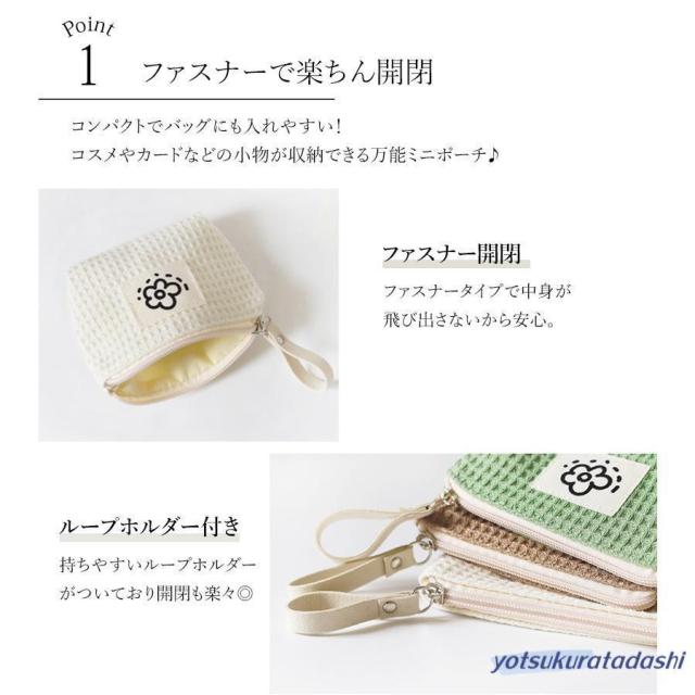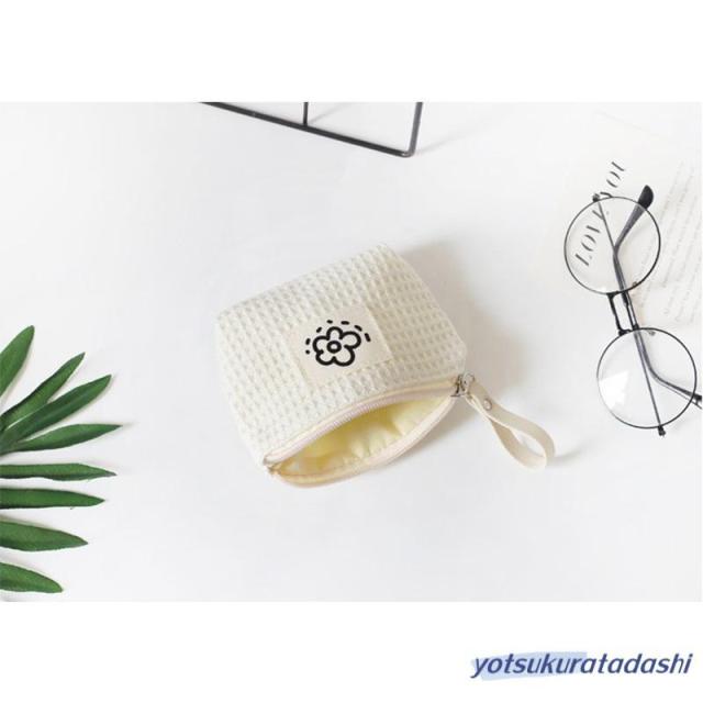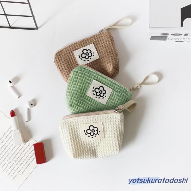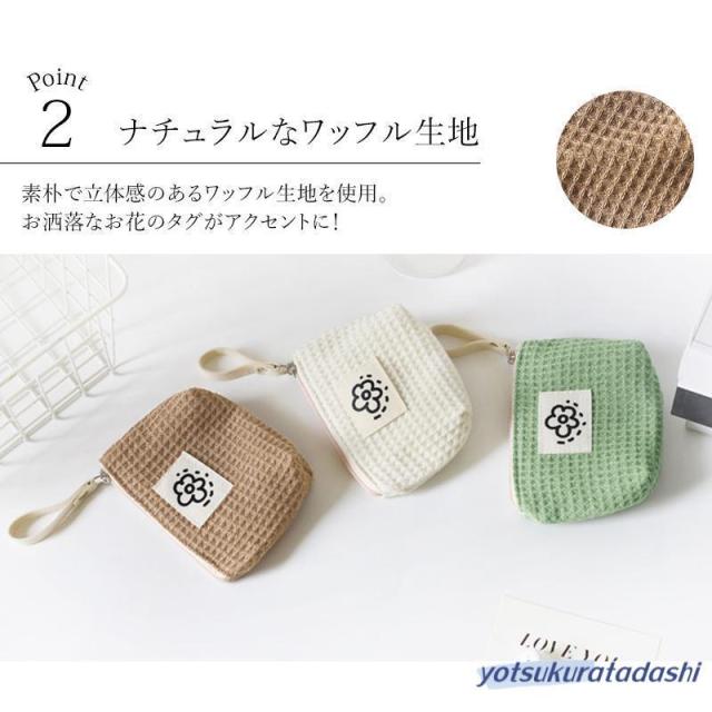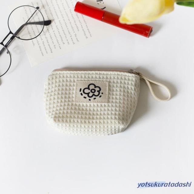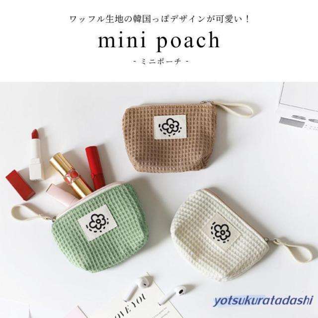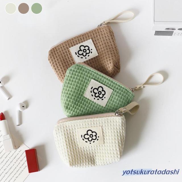 ポーチ 小物入れ 小さめ ミニ レディース コンパクト ミニ財布 ワッフル生地 使いやすい 化粧ポーチ 薬入れ 小銭入れ マチ付き サニタリーポーチ ファスナー お花 ロゴ ループホルダー リップ コスメ ナプキン イヤホン 韓国 プレゼント 持ち運び