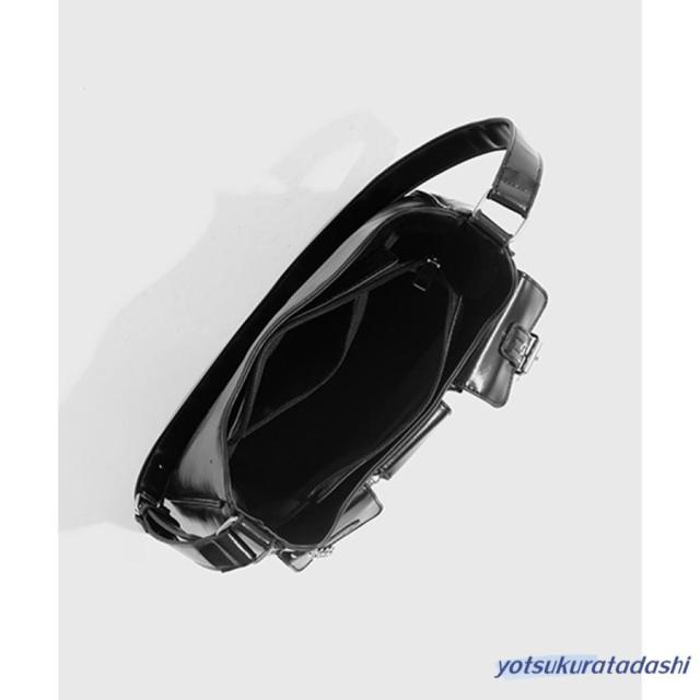 光沢のあるブラックPUレザーを使用した、モード感漂うデザインが魅力。