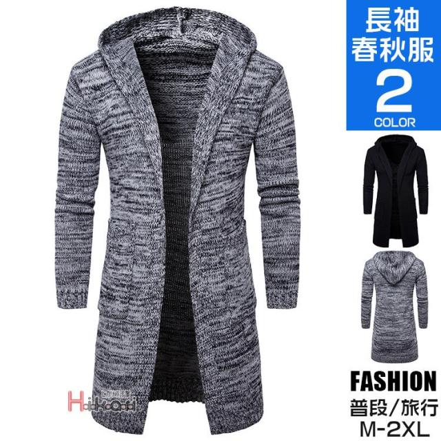 コーディガン メンズ ロングコート フード付き 無地 薄手 ロングカーディガン アウター 羽織り 長袖 トップス 春 秋 冬