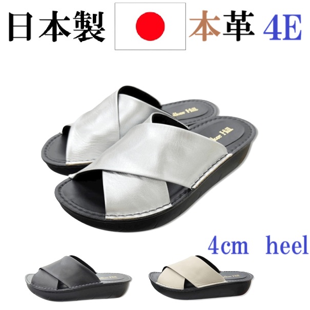 日本製 本革 サンダル レザーサンダル 幅広 4e 外反母趾 アクティブコンフォートソール クロスベルトデザイン 履きやすい 歩きやすい おしゃれ レディースサンダル