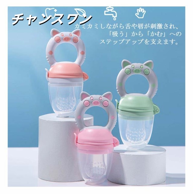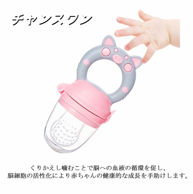 | 赤ちゃんが「自分で食べる」力を育てる離乳食フィーダー! 噛むことにより食べ物が小さくなって出てくるので、喉につまらせるリスクを軽減させます。 カミカミしながら舌や唇が刺激され、「吸う」から「かむ」への ステップアップを支えます。 くりかえし噛むことで脳への血液の循環を促し、脳細胞の活性化により赤ちゃんの健康的な成長を手助けします。 使い方は簡単!果物やベビーフードを入れるだけ! 離乳食を食べないイライラ問題を解決できる!自分で食べることで自信がつき、自立を促します。 | |