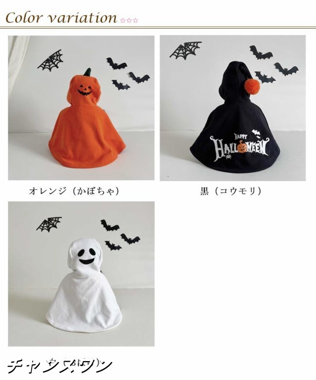 | おばけ、コウモリ、かぼちゃの3種類のフード付のマントです。 ハロウィンパーティはこれ1枚でキュートに変身。 ハロウィンにふさわしい、秋冬の季節にぴったりの衣装です。 屋内、屋外での着用、子供の写真撮影、子供へのギフトなどに最適です。子供服に最高の快適さを提供します。 年に1度の大イベント、ハロウィン、クリスマスはこれ1着で決まり!他にもクリスマス、発表会、コスプレ、仮装舞台やステージ衣装、仮装イベント衣装、記念写真、学芸会、新年会&忘年会の出し物、文化祭、その他イベントやパーティー、誕生日、子供の日、出産祝い、幼稚園や保育園の出し物等、活躍の場は様々です。 | |