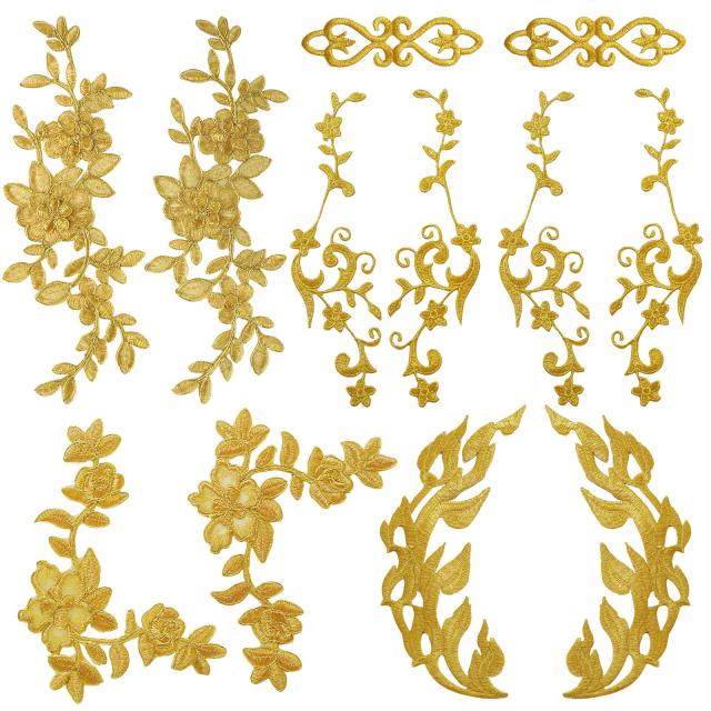 12枚 ワッペン アイロン 花 刺繍 アップリケ 女の子 子供 かわいい ゴールド