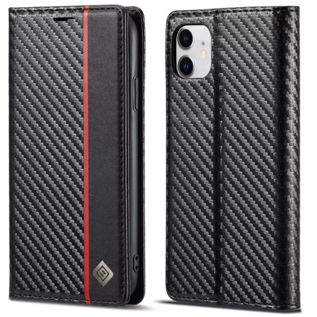 for i Phone 11 ケース 手帳型 アイホン11 手帳 ケース 耐衝撃 炭素繊維テクスチャ マグネット開閉式 便利 軽量 薄型 カード収納 スタンド