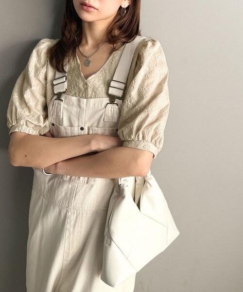 さらに、ボリューム感のあるパフスリーブが二の腕をさりげなく包み込み、女性らしい柔らかなシルエットを叶えます。