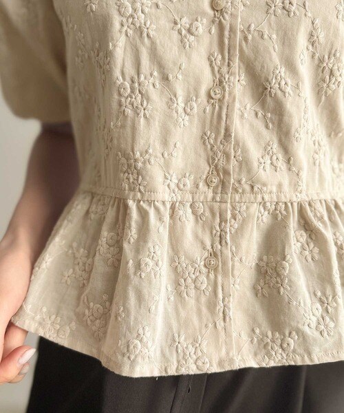 《AYA×クラシカルエルフコラボ》フレンチガーリー☆ショート丈花柄レース裾フリルブラウス(半袖)