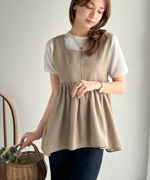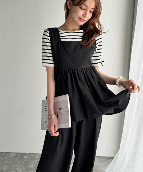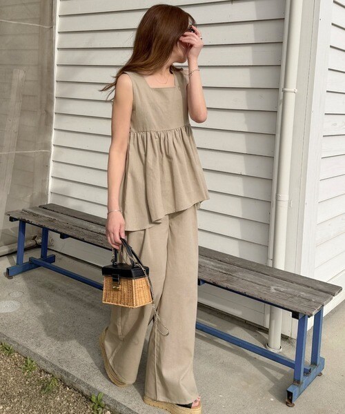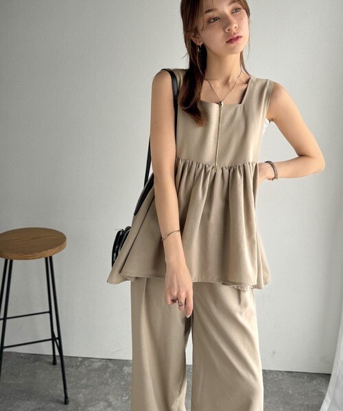 《AYA×クラシカルエルフコラボ》リネン混バックリボンペプラムセットアップ
