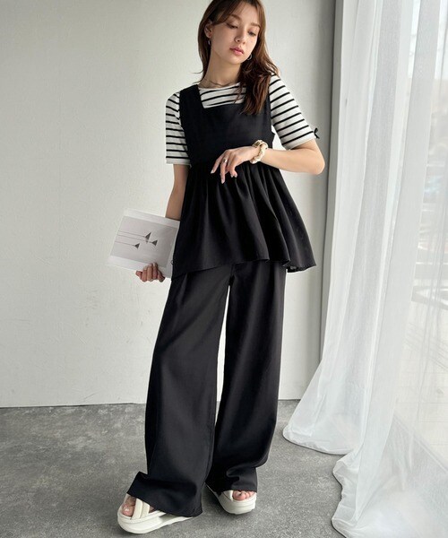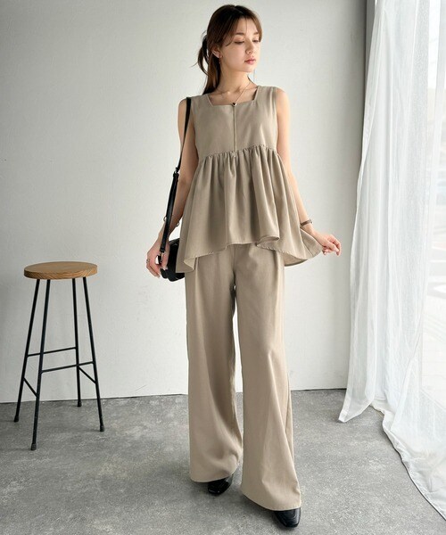単品使いもできるので、トップスはデニムやタイトスカートと合わせてフェミニンに、パンツはシンプルなカットソーやシャツと合わせてミニマルなスタイリングも◎