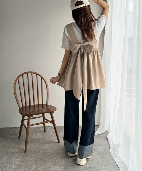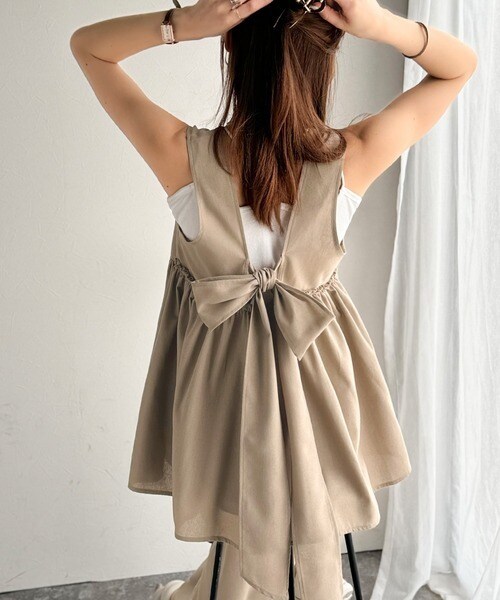 トップスは、背中に大きくあしらったリボンがポイント!