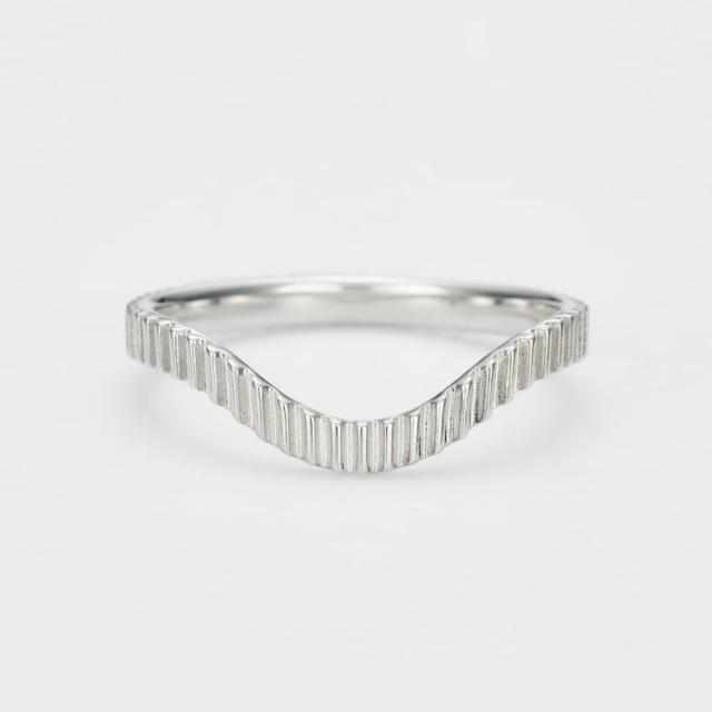 緩やかなVラインが指先を美しく見せる、立体感のあるシルバーリング。指に沿うように描かれた緩やかなVラインが、手元をすっきりと見せてくれるデザイン。表面には立体的な加工を施し、光の当たり方によってさりげない表情の変化を楽しめます。同じくシルバー素材で表面のテクスチャが異なるとの重ね着けはもちろん、中央にポイントのあるリングと合わせることで、より立体感のあるスタイリングが楽しめます。ユニセックスでお使いいただける、シンプルながらも存在感のある一本です。<価格改定のお知らせ> 2026年2月4日(水)より、素材の価格高騰に伴い価格改定を行います。商品タグに記載している価格につきまして、旧価格のものが混在している場合がございます。ご了承くださいますようお願い申し上げます。