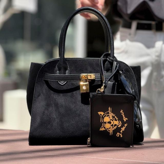・トレンドのスェードにゴールドのキーモチーフがアクセントに