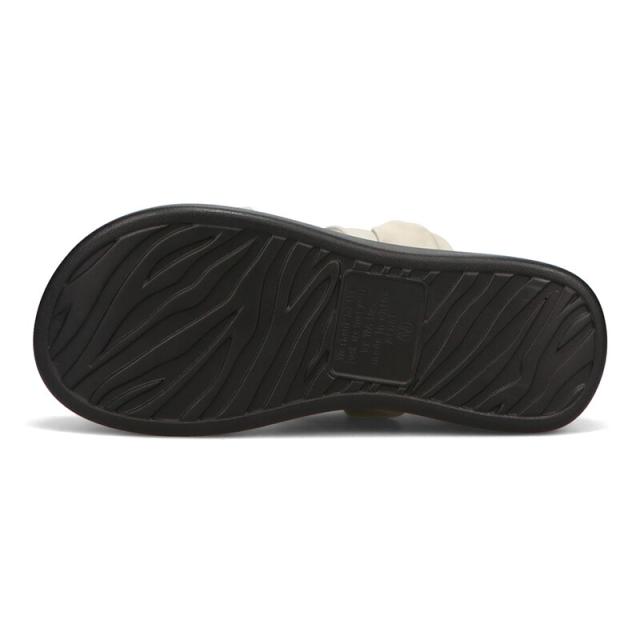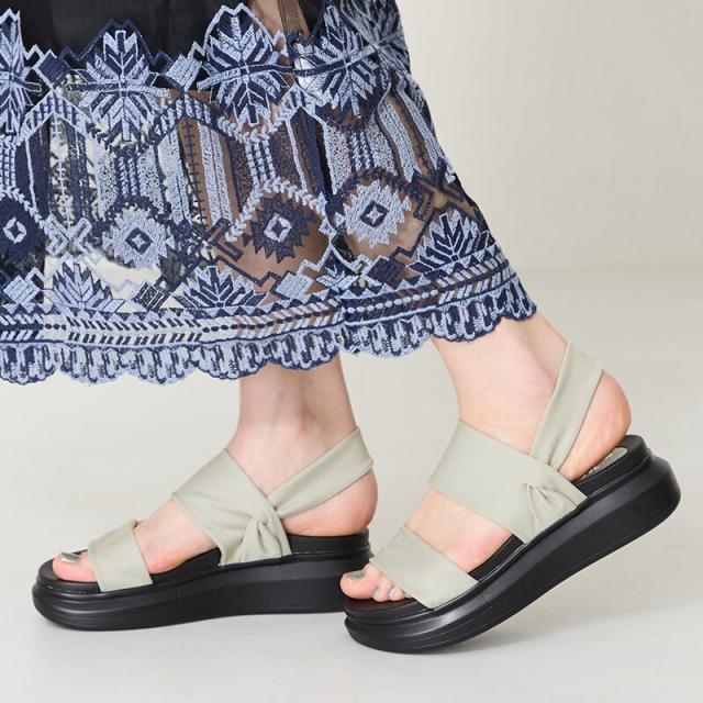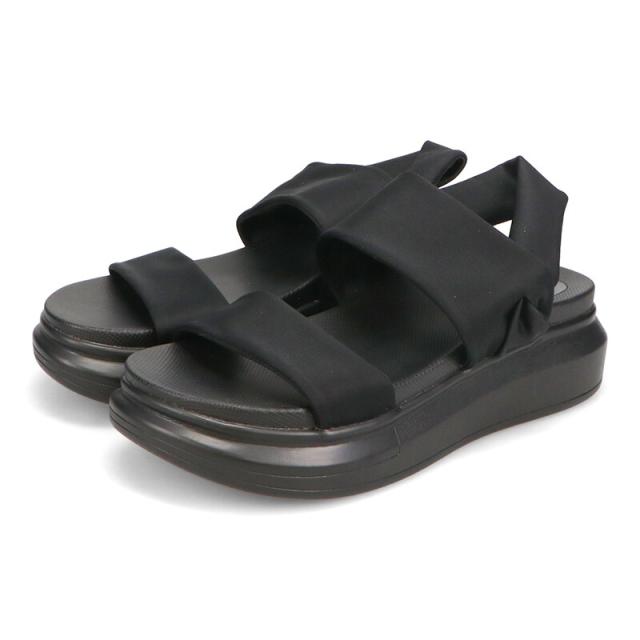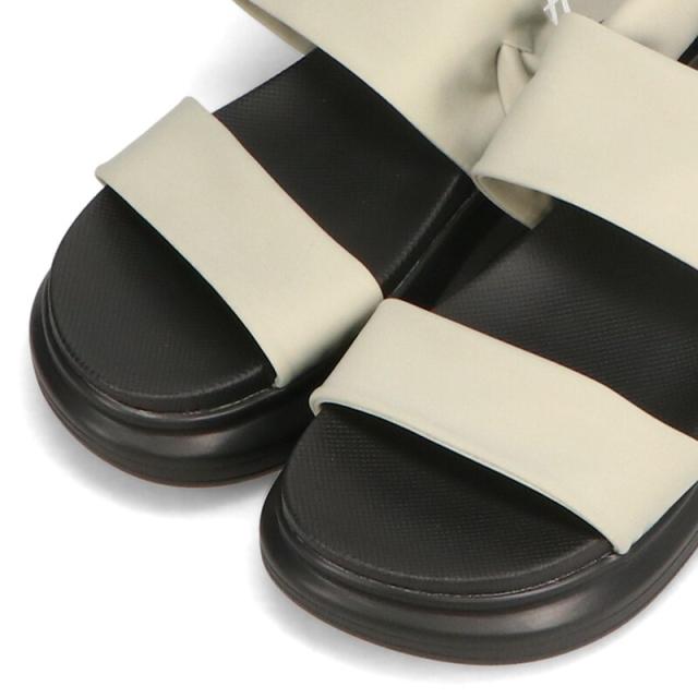 ナイロン素材のベルトと厚底の組み合わせがシックで大人なサンダルはストレッチの効いたベルトで締め付け感や圧迫感がなく履けるのが魅力。