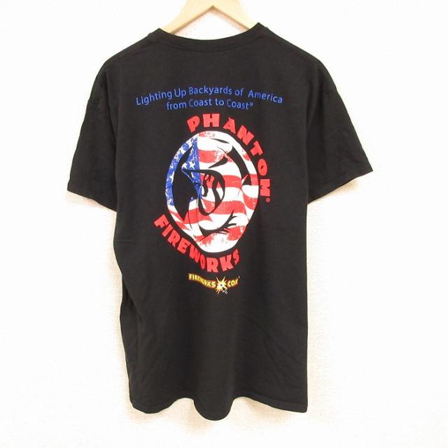 【商品名】 XL★古着 ラッセル 半袖 Tシャツ メンズ ワンポイントロゴ 大きいサイズ クルーネック 黒