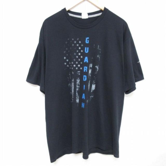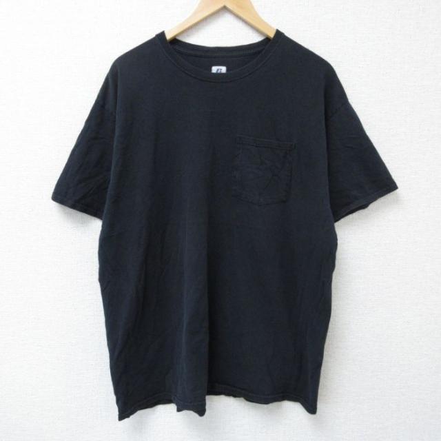 古着 ラッセル 半袖 Tシャツ メンズ ワンポイントロゴ 大きいサイズ クルーネック 黒 ブラック XLサイズ 中古 中古 古着
