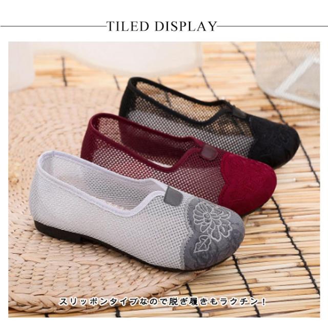 メッシュ スリッポン レディース メッシュ 紐なし 軽い 蒸れない 涼しい 夏 サンダル ビジネス カジュアル コンフォート オフィス履き 室内履き 外出履き ぺたんこ 歩きやすい スニーカー くつ パンプス 敬老の日 ギフト プレゼント 無地 シンプル 高齢者 おしゃれ 送料無料