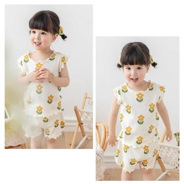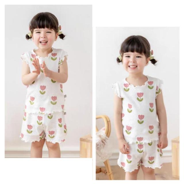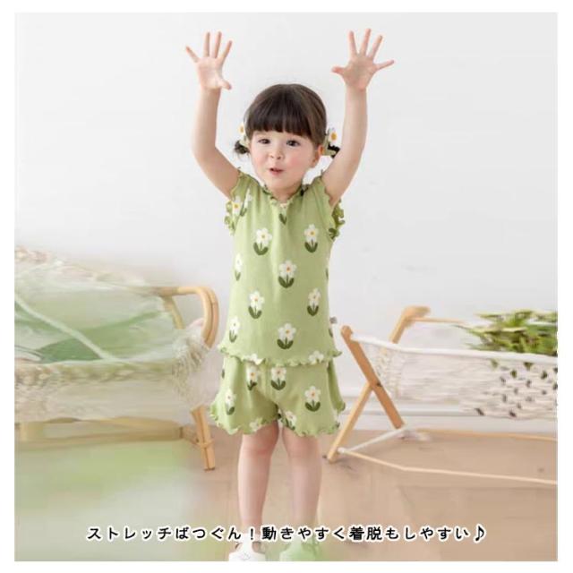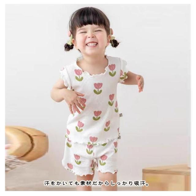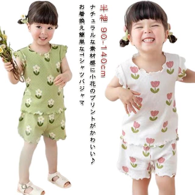 小花パジャマ パジャマ ルームウェア薄手 春夏 春物 夏物 半袖ルームウェア 上下セット セットアップ 接触冷感 ジュニア 速乾 涼しい 90 100 110 120 130 140 女の子 子供服 キッズ ベビー ジュニア 部屋着 半袖 かわいい お洒落 北欧 送料無料
