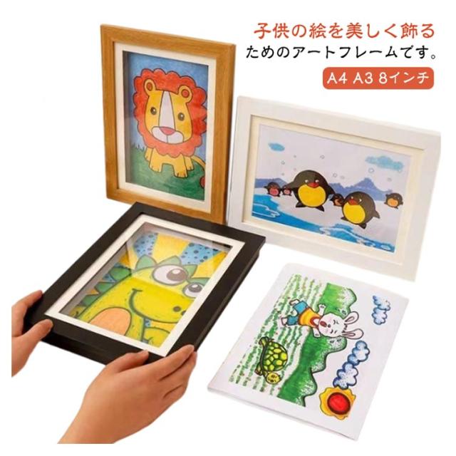 アートフレーム 子供の絵 子供の絵を飾る フレーム アートフレーム 保存用 A4 A3 8インチ 額縁 ポスターフレーム 木製 マグネット開閉 画用紙 ディスプレイ 横縦兼用 フォトフレーム 壁掛け 玄関 絵 絵画 ポスター 写真 作品 保管 絵画教室 子供 孫 幼稚園 保育園