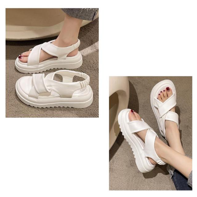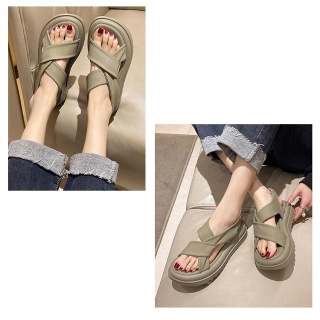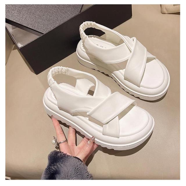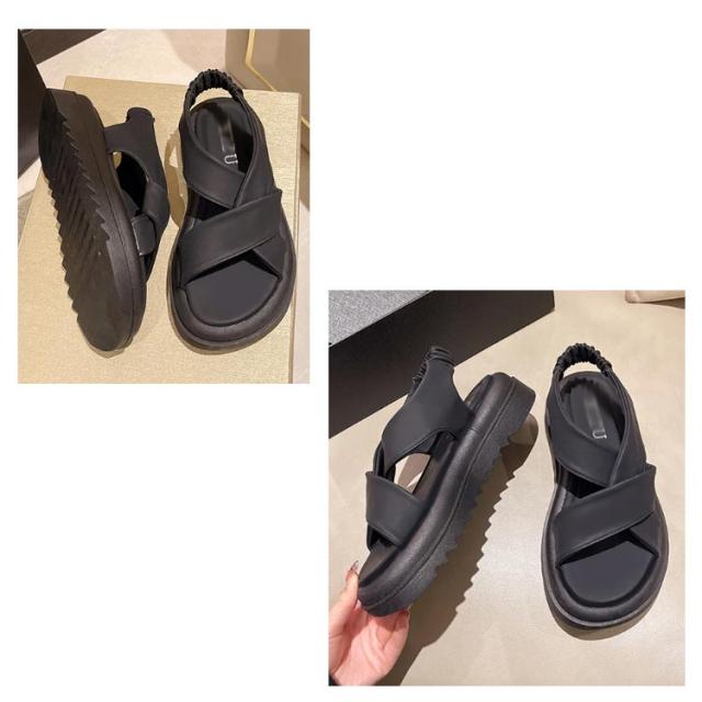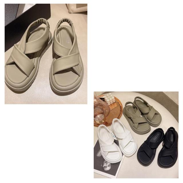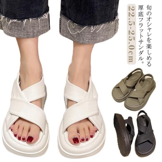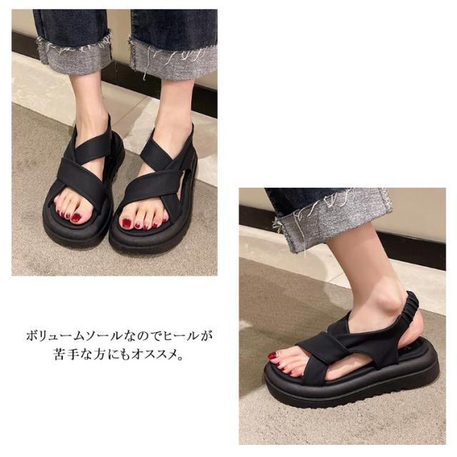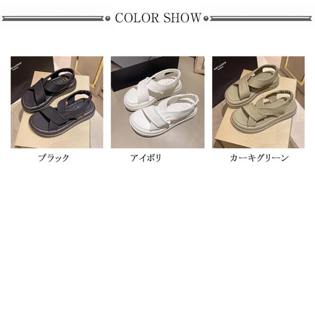 | 旬のオシャレを楽しめる厚底フラットサンダル。 足をしっかりホールドするクロスベルトは、歩行時に安定感があり、歩きやすい。 シンプルなデザインで素足はもちろん靴下で合わせてもかわいい。 ボリュームソールなのでヒールが苦手な方にもオススメ。 スポーティーなストリートスタイルにはもちろん、古着系のガーリースタイルのMIXアイテムとしても、幅広いコーデで大活躍間違いなし。 | |