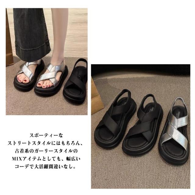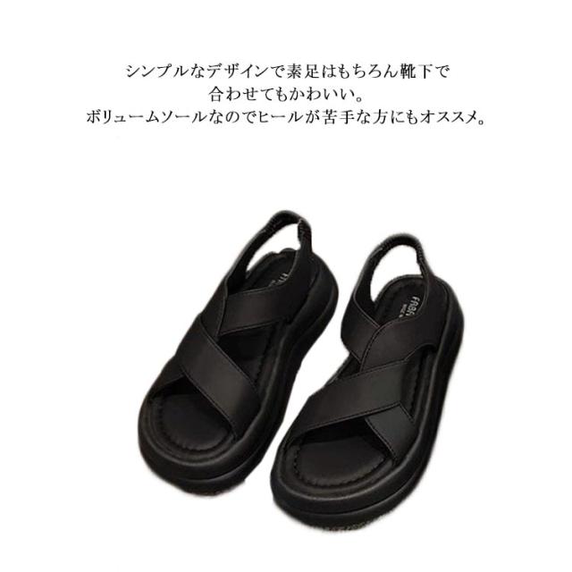 | 旬のオシャレを楽しめる厚底フラットサンダル。 足をしっかりホールドするクロスベルトは、歩行時に安定感があり、歩きやすい。 シンプルなデザインで素足はもちろん靴下で合わせてもかわいい。 ボリュームソールなのでヒールが苦手な方にもオススメ。 スポーティーなストリートスタイルにはもちろん、古着系のガーリースタイルのMIXアイテムとしても、幅広いコーデで大活躍間違いなし。 | |