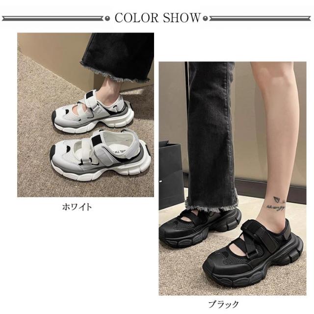 | スニーカーようなスポーツサンダル。今シーズ一番流行っているデザイン特知なスニーカーサンダル。 アッパーは通気性と伸縮性に優れたニット構造。耐久性に優れたメッシュを採用した軽量デザインで、涼しく快適な履き心地をキープ。 特殊ゴムでできたアウトソール 柔らかいだけではなく、防滑性もばっちり! 約5cmヒールで、足長&美脚効果があります。 | |