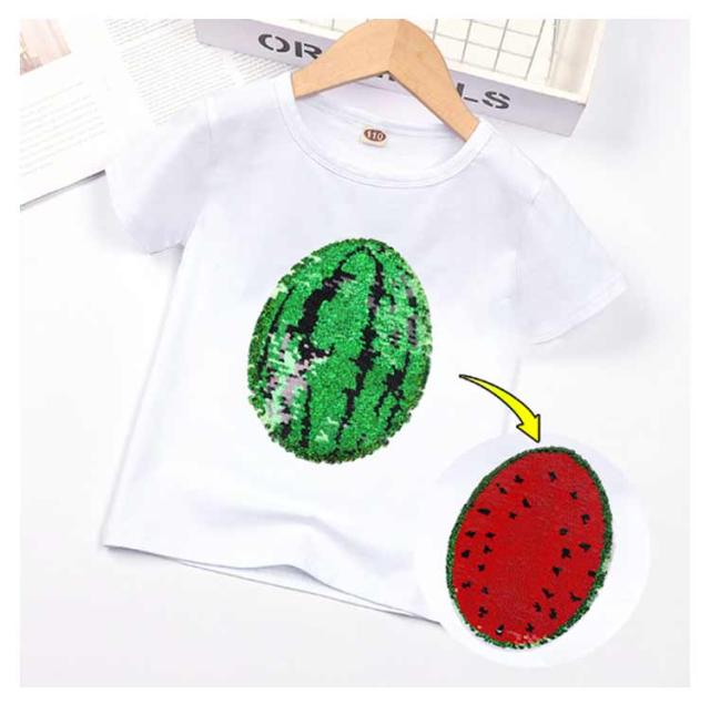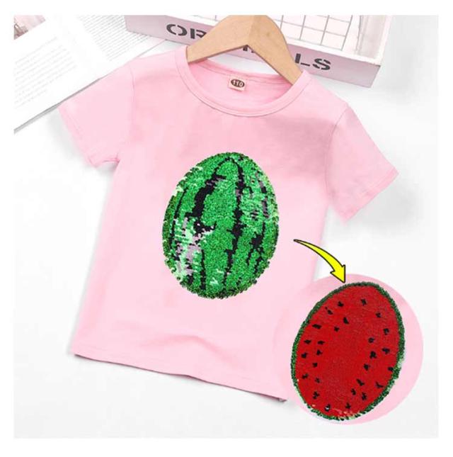 | きらきら光る、キッズスパンコールTシャツ 子供たちにとても人気のあるこの美しいストロベリーパターンの半袖カジュアルトップスは、夏のウェアに最適です。 角度で色が変わる、不思議なスパンコールTシャツ。 スタイリッシュでファッションなデザインが赤ちゃんをより魅力的にします。 | |