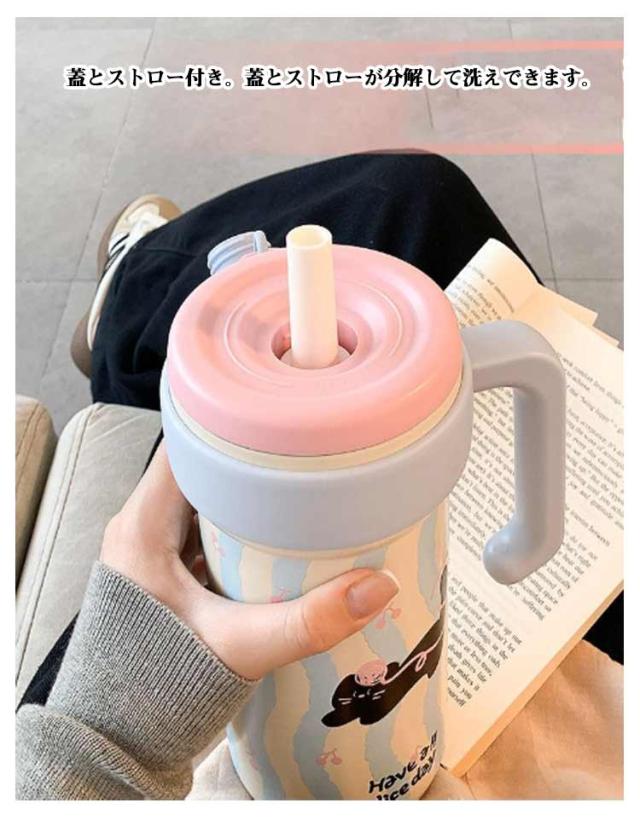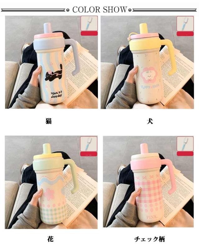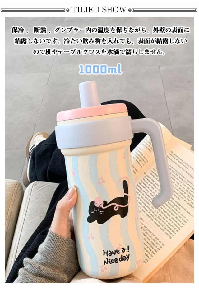 携帯便利 タンブラー 保冷 水筒 保温 1000ml 可愛い ストロー付きタンブラー 1L オフィス 大容量 ストロータンブラー ステンレス 洗いやすい かわいい アウトドア 広口タイプ 運動会 キャンプ スポーツ ドライブ 持ち運び 持ち手付き ブラシ付き ギフト プレゼント 送料無料