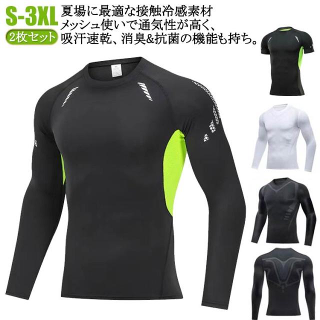 2枚セット 長袖インナーウェア 夏用 接触冷感 吸汗速乾 消臭 抗菌 長袖インナーウェア 夏 メンズ アンダーシャツ ストレッチ 春夏 作業服 作業着 スポーツ 送料無料
