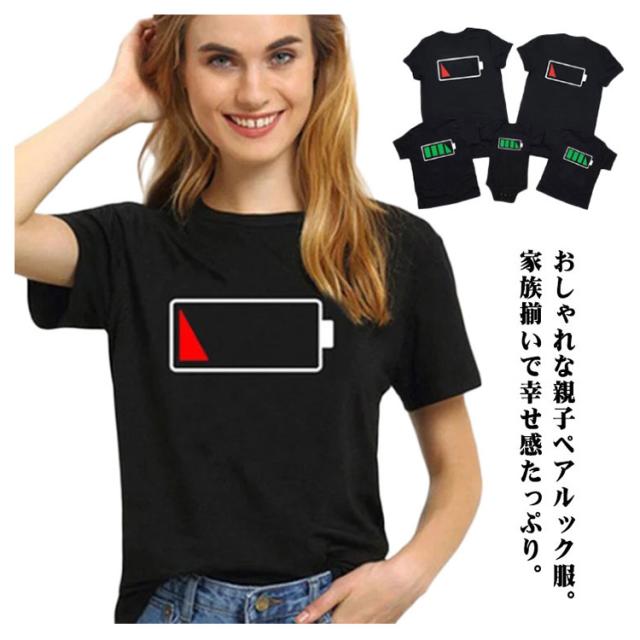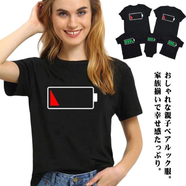 親子 ペアtシャツ 親子 ペアルック 赤ちゃん ロンパース リンクコーデ 親子 セット 夏 親子コーデ tシャツ 電池 tシャツ パパ ママ ベビー 家族 お揃い tシャツ 母 息子 父 娘 おそろい 兄妹 親子ペア 親子tシャツ パパ ママ 男の子 女の子 誕生日 プレゼント