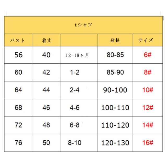 | サイズ | ロンパース0-3ヶ月 ロンパース3-6ヶ月 ロンパース6-12ヶ月 ロンパース12-18ヶ月 ロンパース18-24ヶ月 tシャツ6# tシャツ8# tシャツ10# tシャツ12# tシャツ14# tシャツ16# S M L XL 2XL 3XL |