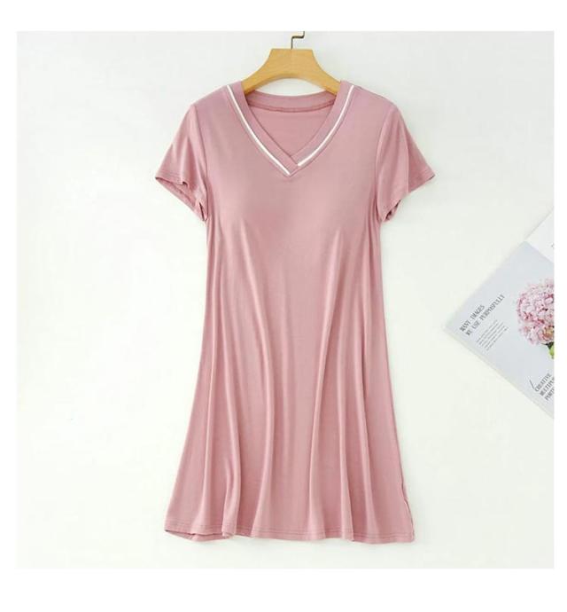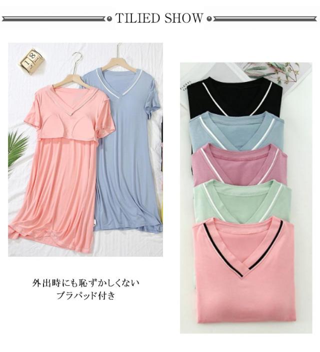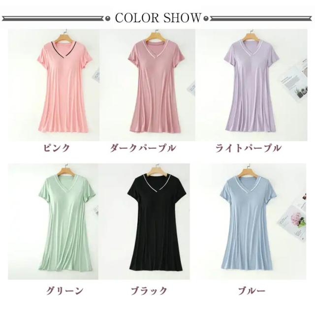 Vネック リラックス 速乾 女性 カップ付きワンピース レディース 可愛い 室内着 ワンピ 部屋着 ワンピース ルームウェア シンプル 半袖 カップ付き モーダル カップ付きワンピース