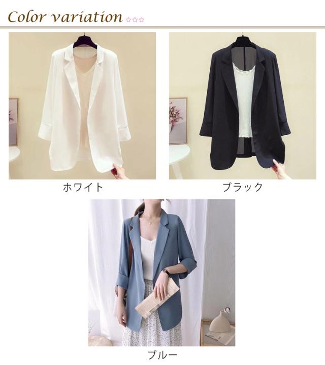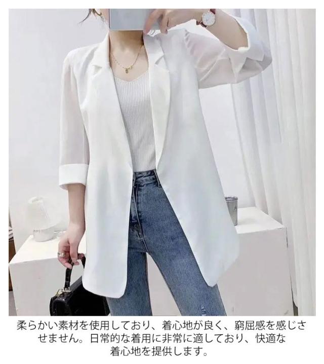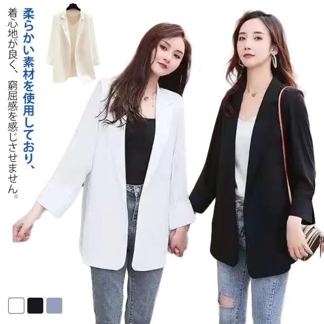 春コート ジャケット サマージャケット 無地 スーツ レディース テーラードジャケット 薄手 サマージャケット 夏 トップス きれいめ ビジネス サマースーツ カジュアル アウター コート 20代 30代 40代 おしゃれ 通勤 オフィス 仕事 会社 ホワイト ブラック
