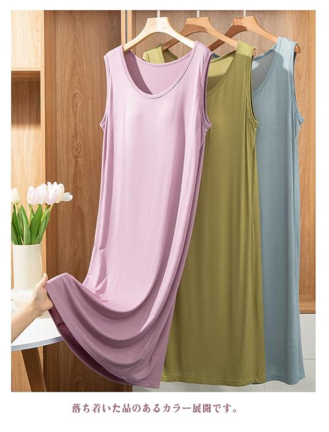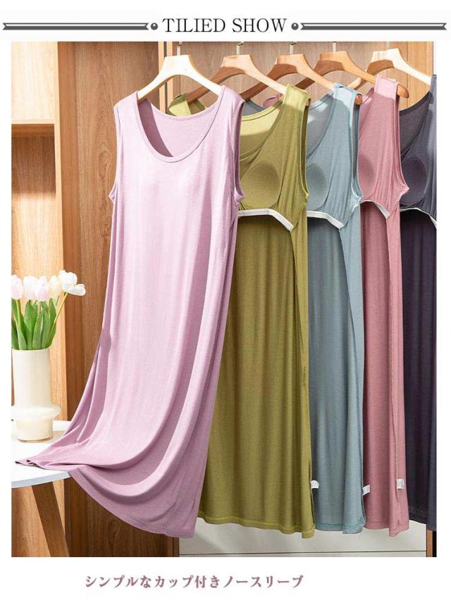 カップ付き 1枚で着られる 部屋着 ワンピース レディース ロング丈 大きいサイズ ルームウェア ノースリーブ ノーブラ 無地 春 夏 パジャマ 夏服