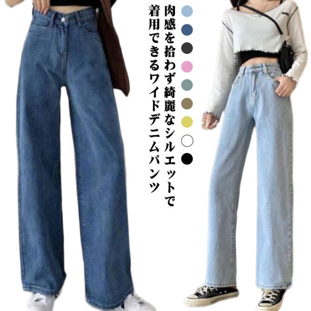 ゆったり ジーンズ フレアパンツ レディース ガウチョパンツ ハイウエスト ボトムス デニムパンツ ジーパン デニム デニムパンツ ゆったり ロング パンツ ズボン ワイド 大きいサイズ 体型カバー おしゃれ カジュアル 春 夏