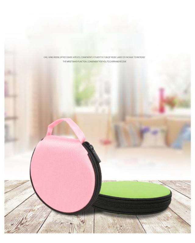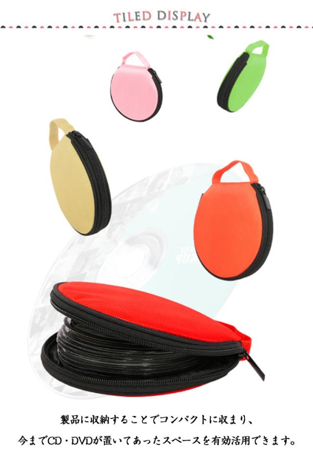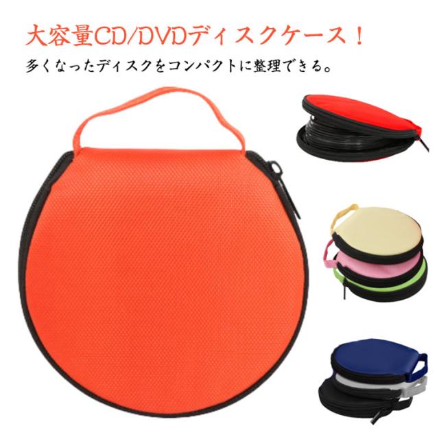 ファスナー付 収納ポーチ ディスクケース ハンドル付 キャリングケース CDホルダーバッグ 旅行 車 収納バック小型 収納袋 CDケース 持ち運び 無地 円形 自宅 オフィス用 メディア 収納ケースバッグ ディスク収納 保護 CDケース かわいい