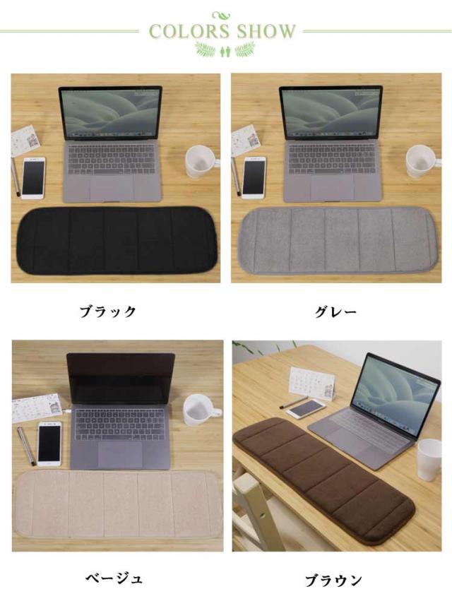 | パソコン作業の疲労を軽減!クッション性のあるキーボード用のアームレスト 机にぴったりと貼り付くように滑り止め加工が施されており、使用中にズレてしまうこともありません。 変形しにくいので、在宅やオフィスワークなど毎日のPC作業におすすめです。 いろいろ使えるデスクマット。パソコン作業以外にもネイルマットとして、読書や書き物の肘置きマットとしてもおすすめです。 折りたたんで持ち運べるため、在宅だけでなくカフェやオフィスにも持ち運んで使用することができます。 洗えるので衛生面も安心。 シンプルで落ち着いた色合いなので、20代はもちろん30代や40代の女性の方、また男性の方でもご利用いただけます。 | |