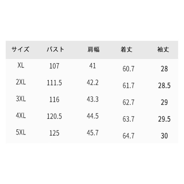 | サイズ | XL 2XL 3XL 4XL 5XL |