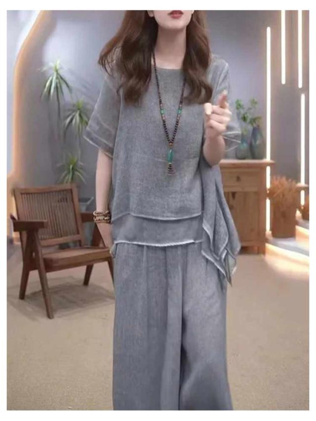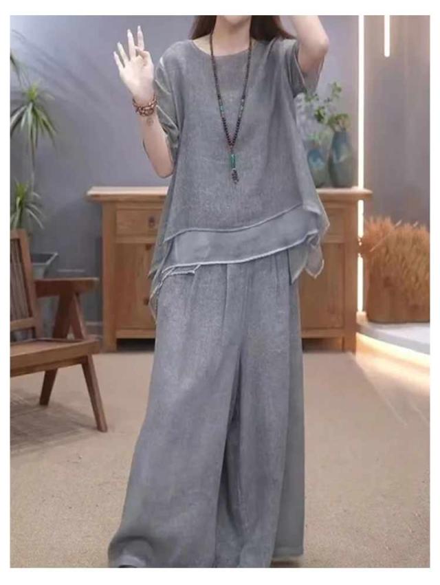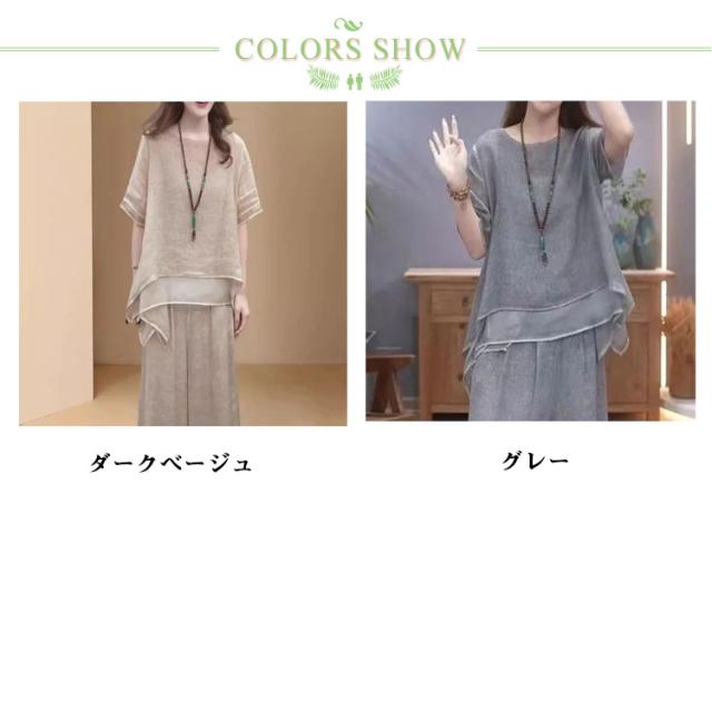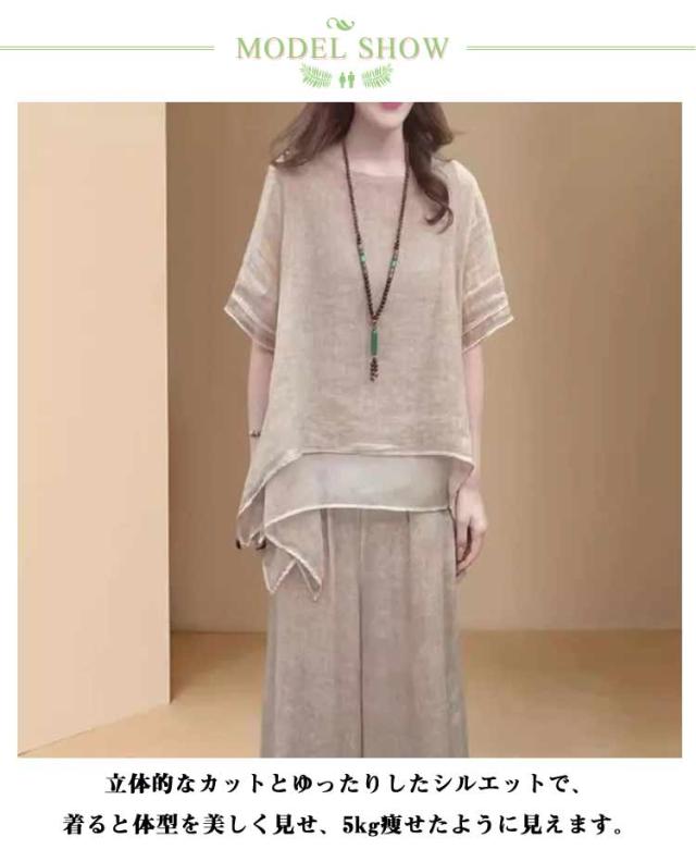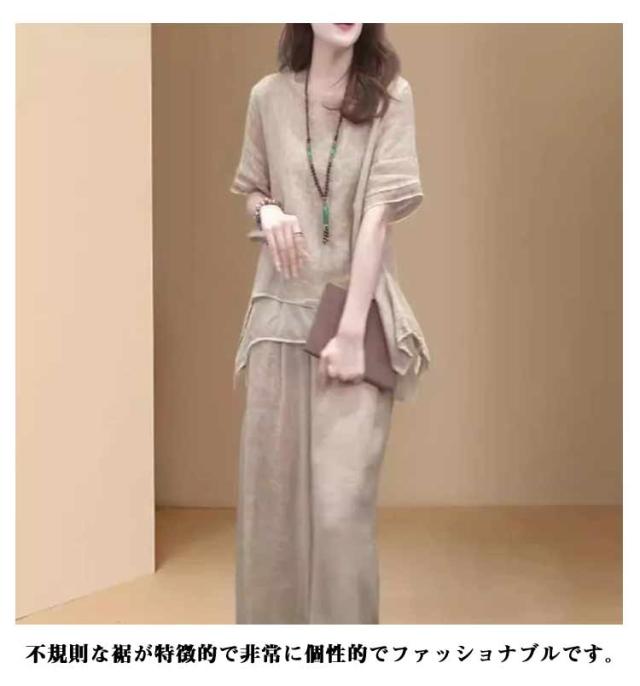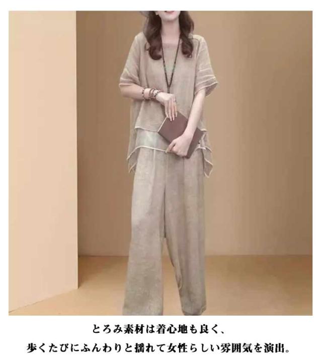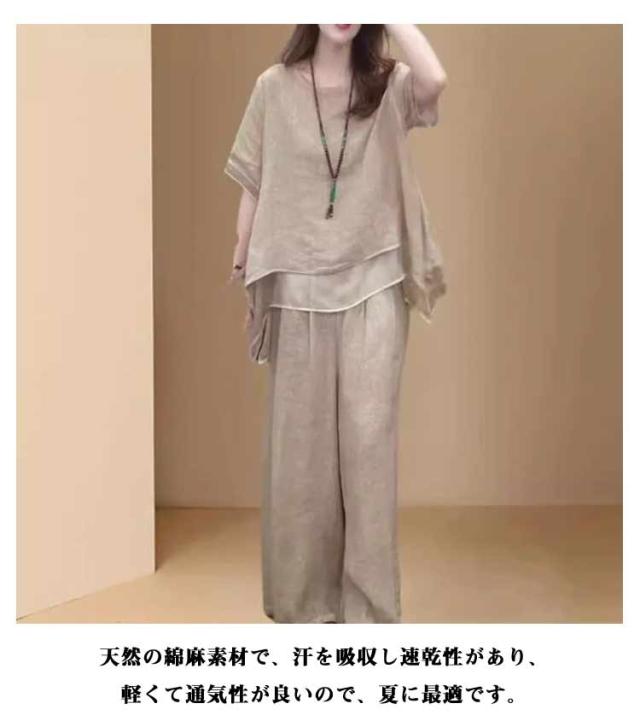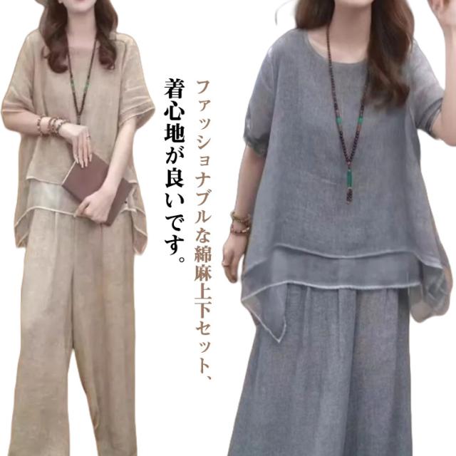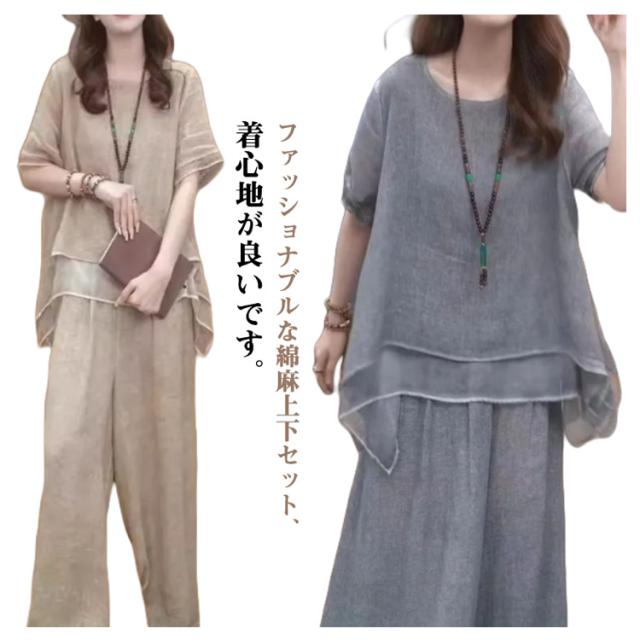 上下セット セットアップ 通勤 トップス 夏 ロングパンツ ゆったり 軽量 春 綿麻 セットアップ きれいめ カジュアル シンプル おしゃれ ワイドパンツ 大きいサイズ 柔らか 透气 体型カバー レディース 通学 デート ママコーデ