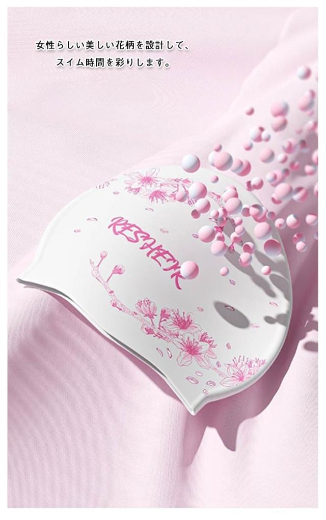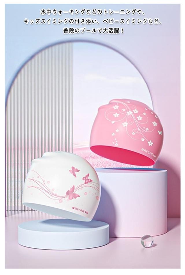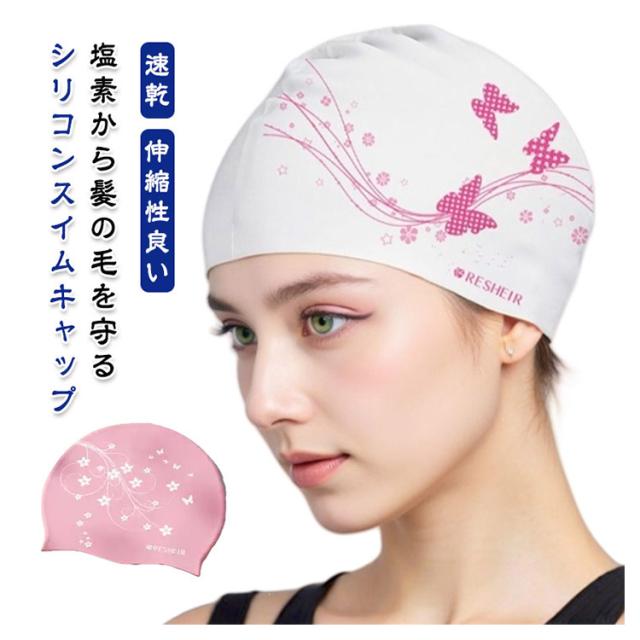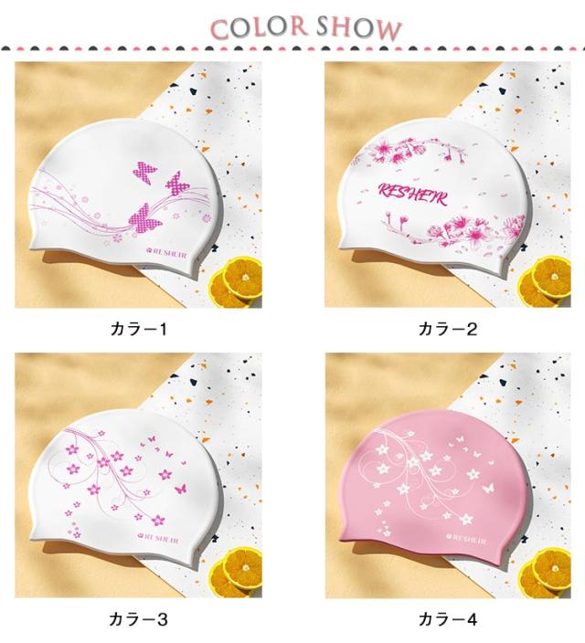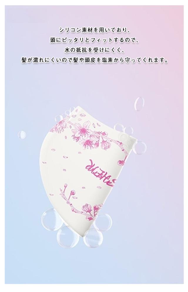 | 塩素から髪の毛を守るシリコンスイムキャップ 大きいサイズ・伸縮性抜群なので、髪の毛が長い方でも、まとめて帽子にスマートに収まります。 シリコン素材を用いており、頭にピッタリとフィットするので、水の抵抗を受けにくく、髪が濡れにくいので髪や頭皮を塩素から守ってくれます。 女性らしい美しい花柄を設計して、スイム時間を彩りします。 水中ウォーキングなどのトレーニングや、キッズスイミングの付き添い、ベビースイミングなど、普段のプールで大活躍! | |