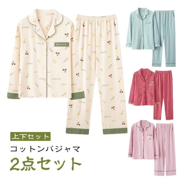 | 【コットンパジャマ】 【2点セット】 豊富な柄展開がかわいい前開きパジャマ。 吸湿性と通気性に優れており、汗をかいてもムレにくい! 窮屈感のない、ゆとりのあるシルエット。 トップスはフロントボタン付きのデザイン。 襟元が程よく開いて心地よい睡眠をサポート。 ポケット付き。 ストレスなく履けるロングパンツはウエスト総ゴム仕様でらくちん。 | |