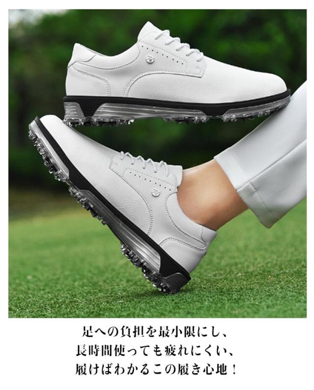| ダイヤル式靴紐で着脱簡単なゴルフシューズ! 足の形状に合わせて作られ、クッション性のあるインソールを備えています。 通気性と汗吸収性に優れた柔らかい生地で蒸れにくく快適! 軽量で長時間履いても疲れにくい!スパイクレスで履いたままゴルフ場への移動が可能! 足への負担を最小限にし、長時間使っても疲れにくい、履けばわかるこの履き心地! ランニング、ジョギング、ウォーキングなどあらゆる場面にお使い頂ける万能靴です。 | |