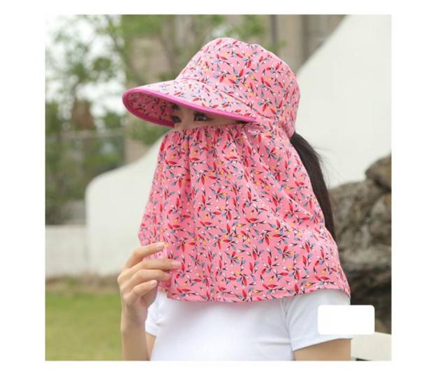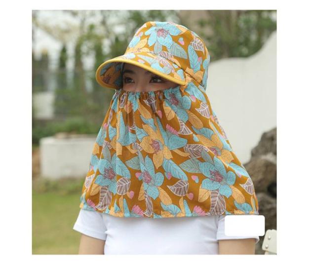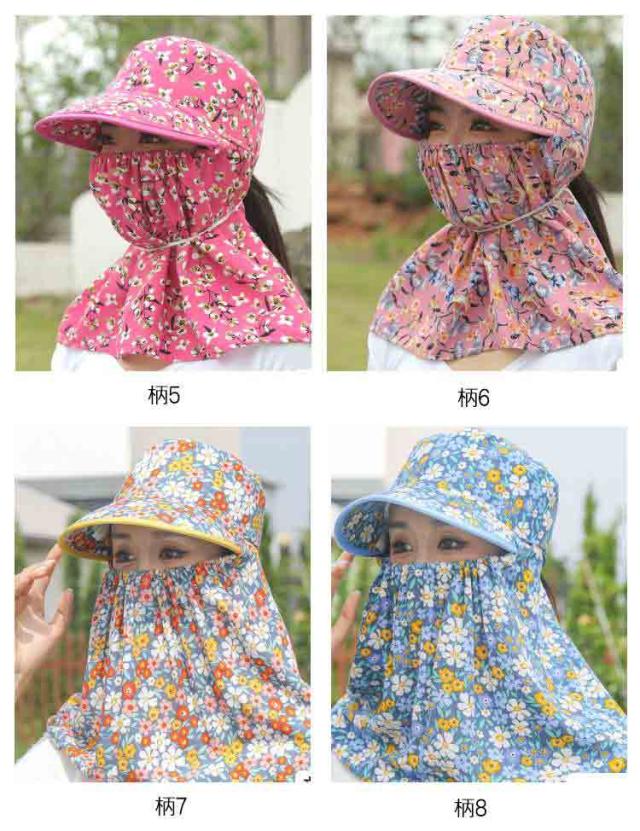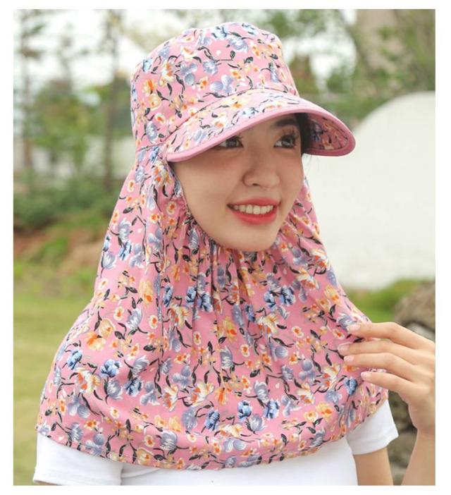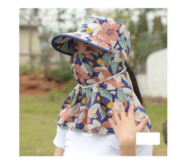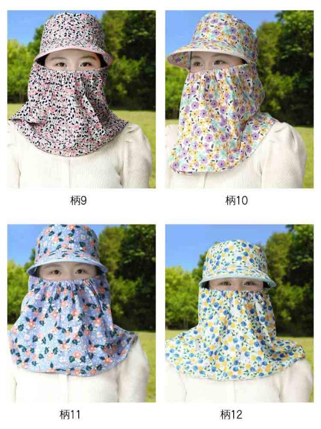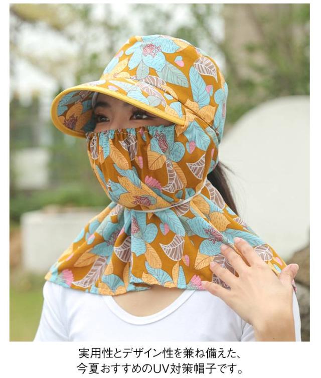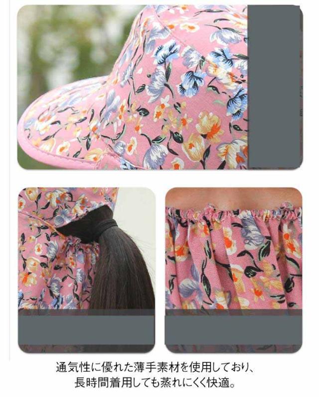夏用 帽子 日除け帽子 フェイスカバー付き UVカット 10cmつば 首元ガード 日除け帽子 花柄 サンハット 農作業 サイクリング お出かけ用 ガーデニング ポニーテール対応 女性用 釣り 登山