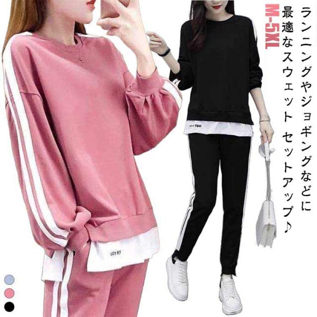 セットアップ セット スウェット 長袖 産後 レディース パンツ ジャージ 大きいサイズ スウェットパンツ ルームウェア ライン 大きい 部屋着 黒 トップス 修学旅行 入院 スウェット 旅行 薄手 スポーツウェア 春 秋 冬 秋冬