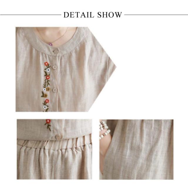 | 【大人女性のための上下セット】 コットンリネン/春夏用レディース/七分袖トップス+パンツ ゆとりのある優雅スタイル × ナチュラルな着心地 チャイナ風刺繍デザイン:上品なフロント刺繍とVネック 文芸風のゆったりシルエット:体型カバーしながら、楽に着られる大人のリラックス感 通気性の良い素材:肌に優しく、汗ばむ季節も快適な着心地 パンツはウエストゴム+斜めポケット付きで機能性も抜群 シンプルながらも華やか、日常のお出かけやおうち時間にもぴったり ナチュラルな風合いに映える刺繍が、上品な存在感をプラス。 春夏を快適に過ごす、大人女性にぴったりのリラックスセットアップ。 | |