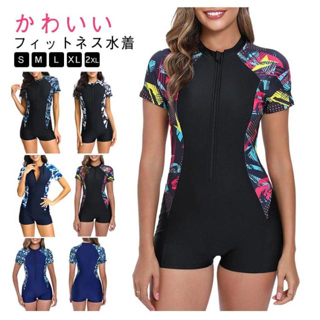 フィットネス水着 レディース ママ水着 フィットネス 体型カバー 半袖 練習用 競泳水着 オールインワン 競泳用 女性 運動用 フィットネス水着 ジム プール 海水浴 おしゃれ 着痩せ ジップアップ 30代 40代 50代 スイムウェア 水泳
