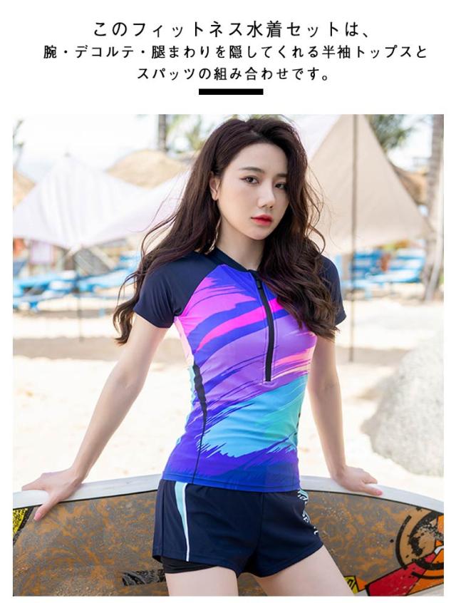 スパッツ フィットネス トレーニング用 水着 セットアップ セパレート スイムウェア フィットネス水着 練習用 半袖トップス ジム 水泳 スイミング 女性 運動用 レディース プール 海水浴 体型カバー 着痩せ おしゃれ