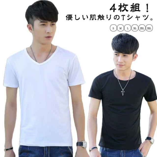 Vネック Tシャツ 半袖 仕事 アンダーシャツ Uネック クルーネック 丸首 男性用 下着 肌着 インナー 4枚セット!メンズ 大きいサイズ 紳士 綿 白 黒 無地 定番 シンプル オフィス 4枚セット!メンズ tシャツ インナーウェア カットソー