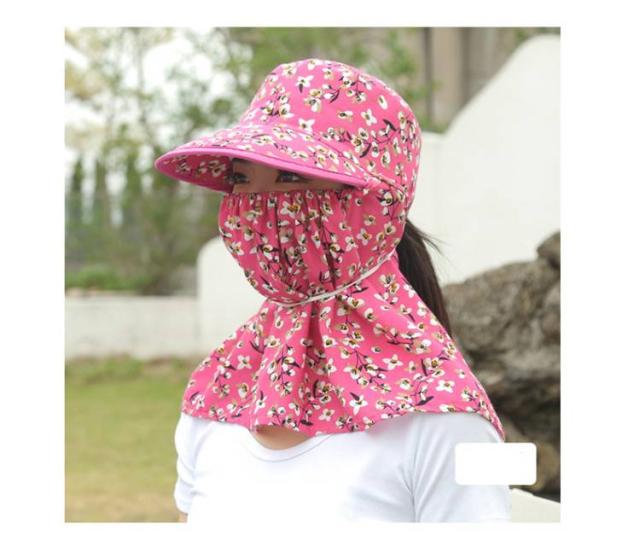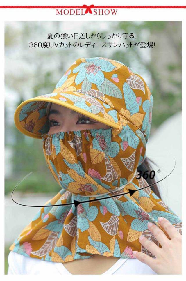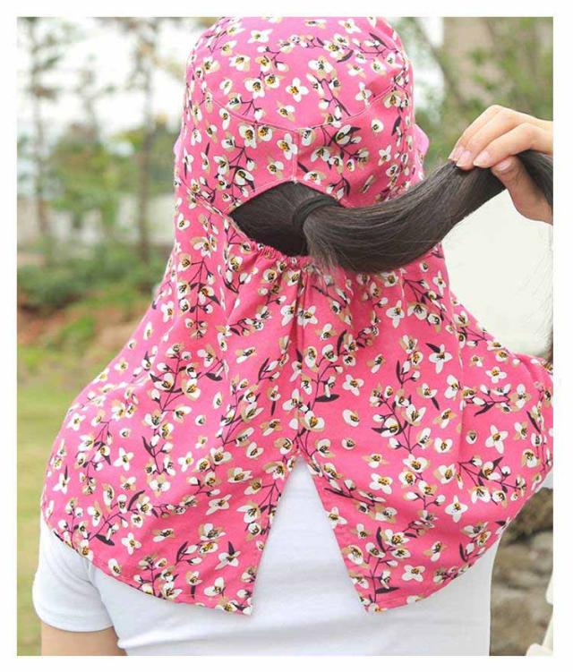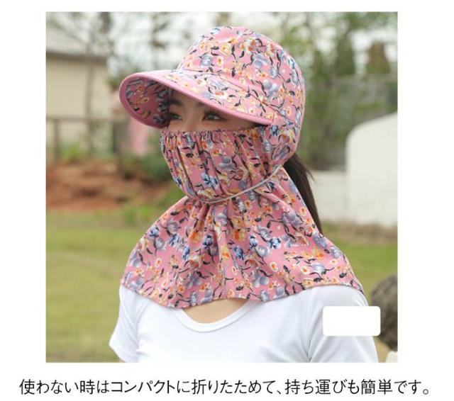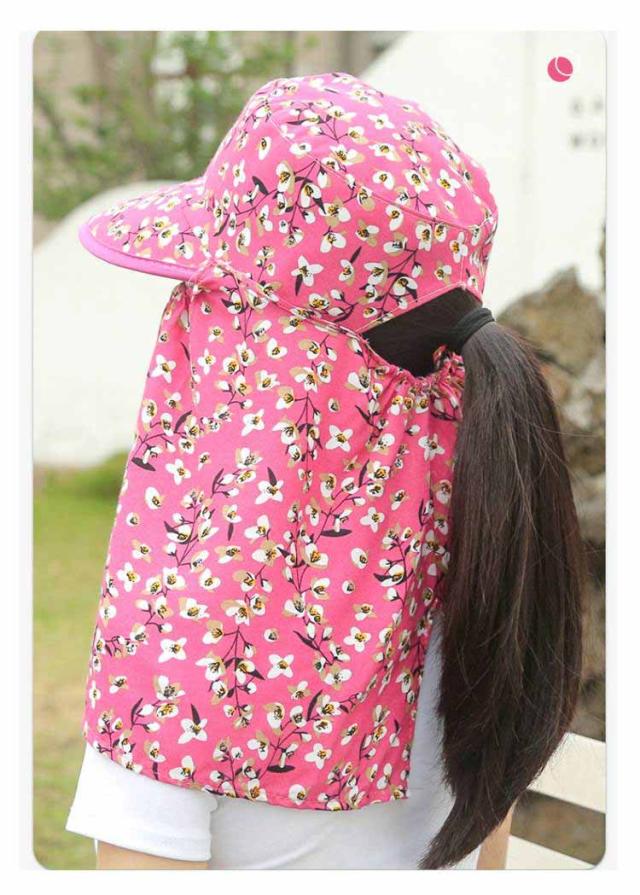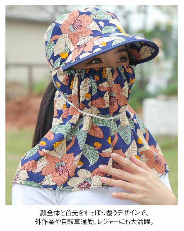 日除け帽子 首元ガード ガーデニング UVカット サンハット 日除け帽子 10cmつば 花柄 帽子 フェイスカバー付き 農作業 サイクリング お出かけ用 折りたたみ ポニーテール対応 女性用 釣り 登山